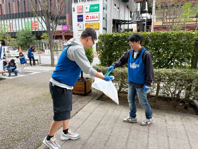 豊田市駅前に集合し、スカイホール豊田までの道のりを、ごみを拾いながら歩きました。