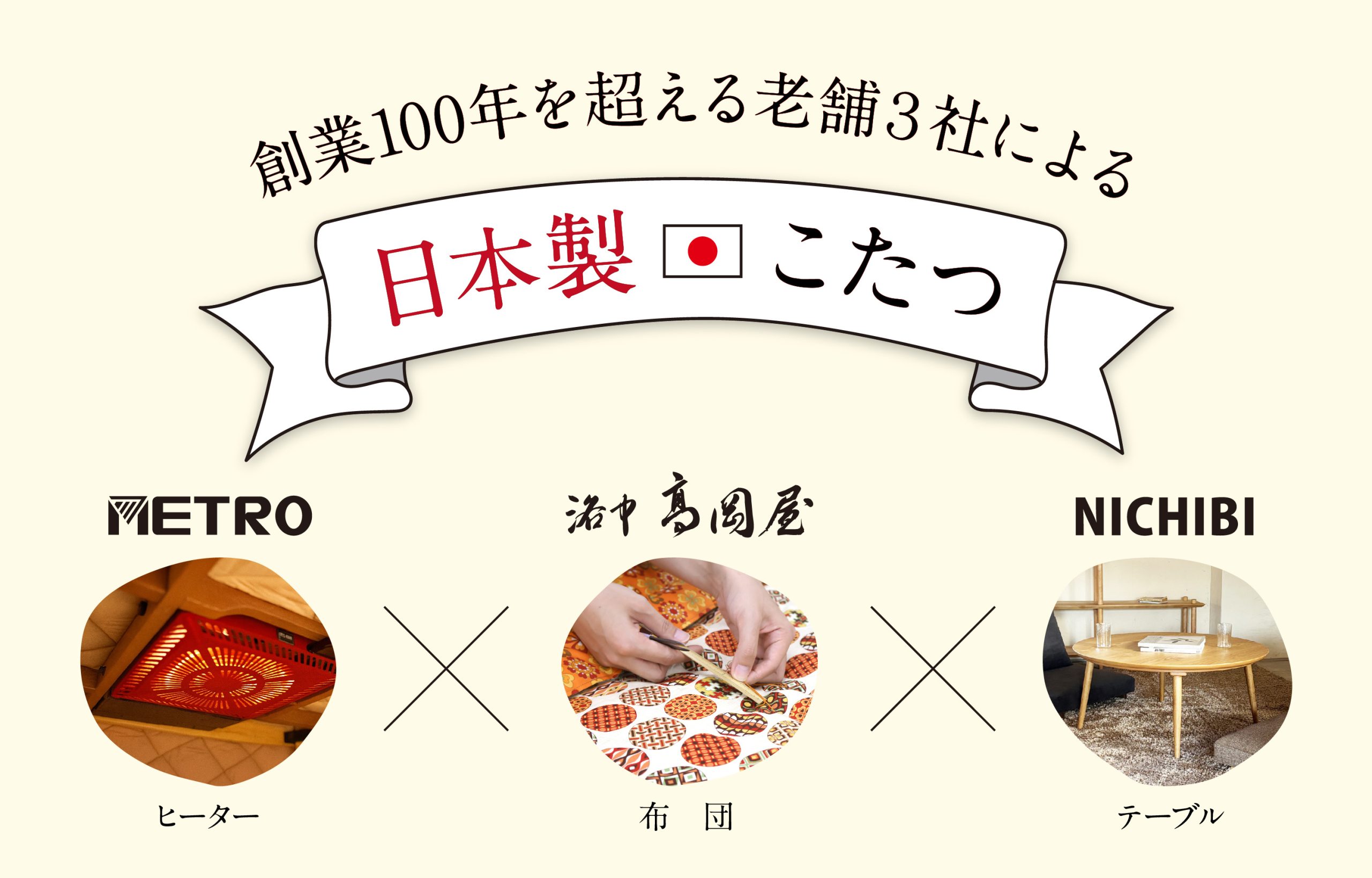 昭和の時代から日本のものづくり文化を築いてきた、創業100年を超える老舗企業3社の「技」と「想い」と、日本暮らしの原風景ともいえるこたつを掛け合わせ、次の時代に向けた新たな価値提案を目指しています。